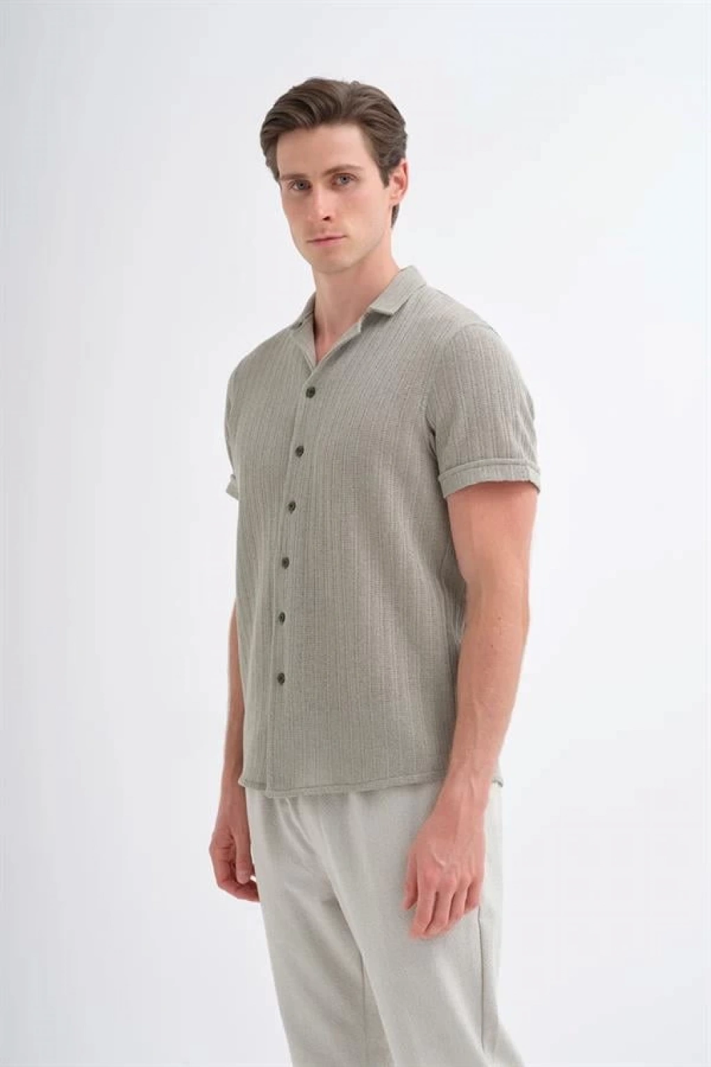12274798 Müslin Kumaş Kısa Kollu Erkek Gömlek Haki