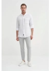 12273907 Keten Kumaş Uzun Kollu Erkek Gömlek Beyaz