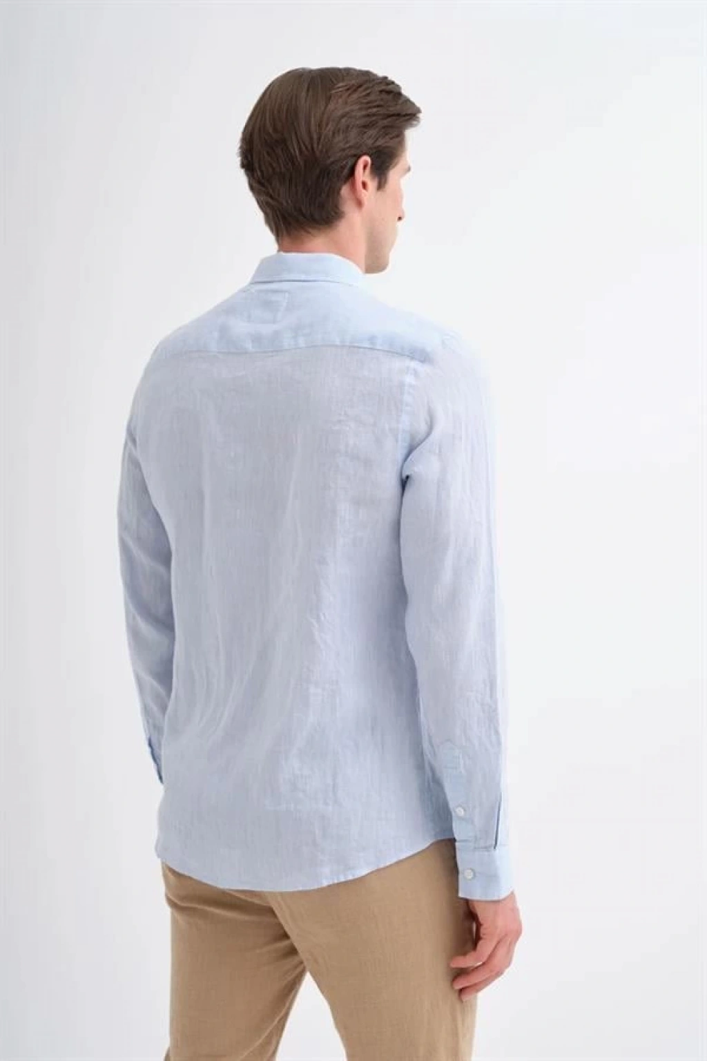 2037 Regular Fit Uzun Kollu Saf Keten Erkek Gömlek Açık Mavi