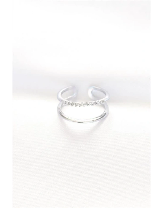 2li Görünümlü Su Yolu Tasarımlı Silver Renk Ayarlanabilir Yüzük
