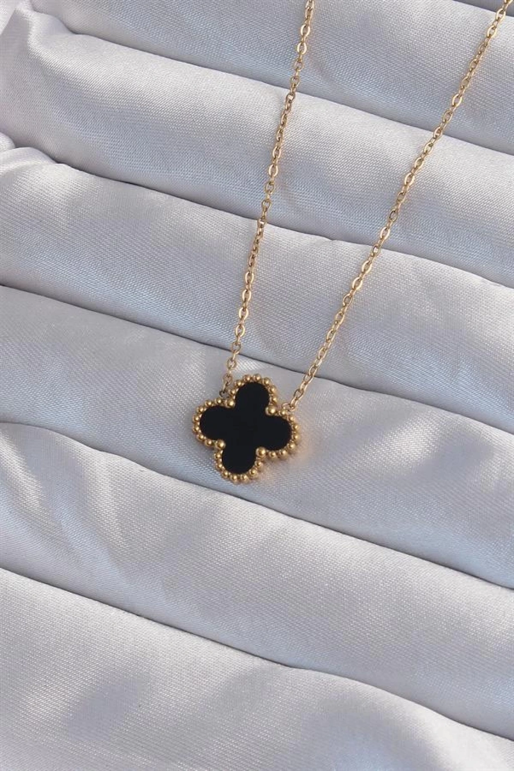 316L Çelik Gold Renk Siyah Mineli Yonca Kolye