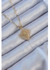 316L Çelik Gold Renk Kanatlı Kalp Model Zirkon Taş Detay Kadın Kolye