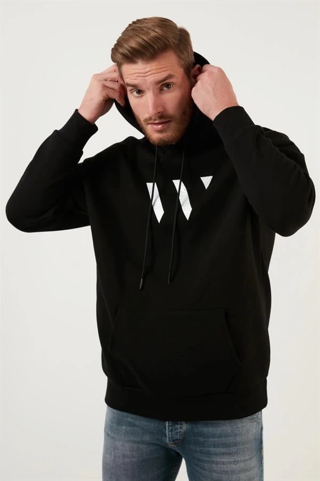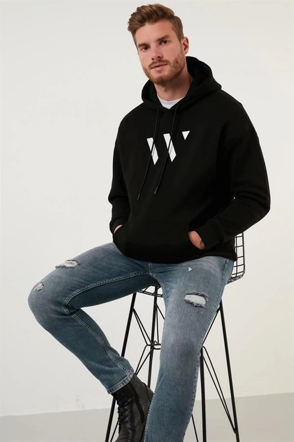 Baskılı Kapüşonlu Büyük Beden Erkek Sweatshirt