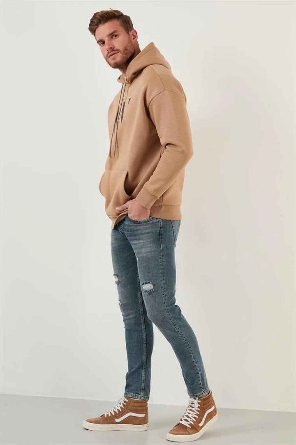 Kapüşonlu Oversıze Kanguru Cepli Erkek Sweatshirt