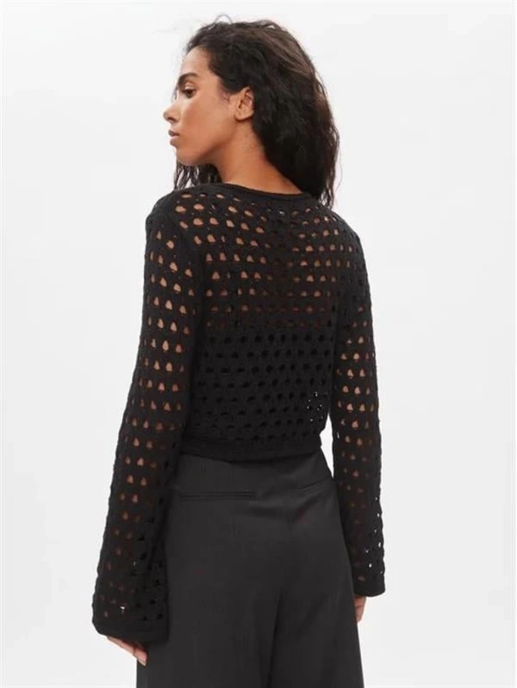 Kadın siyah bisiklet yaka gold düğmeli ottoman bluz s2310