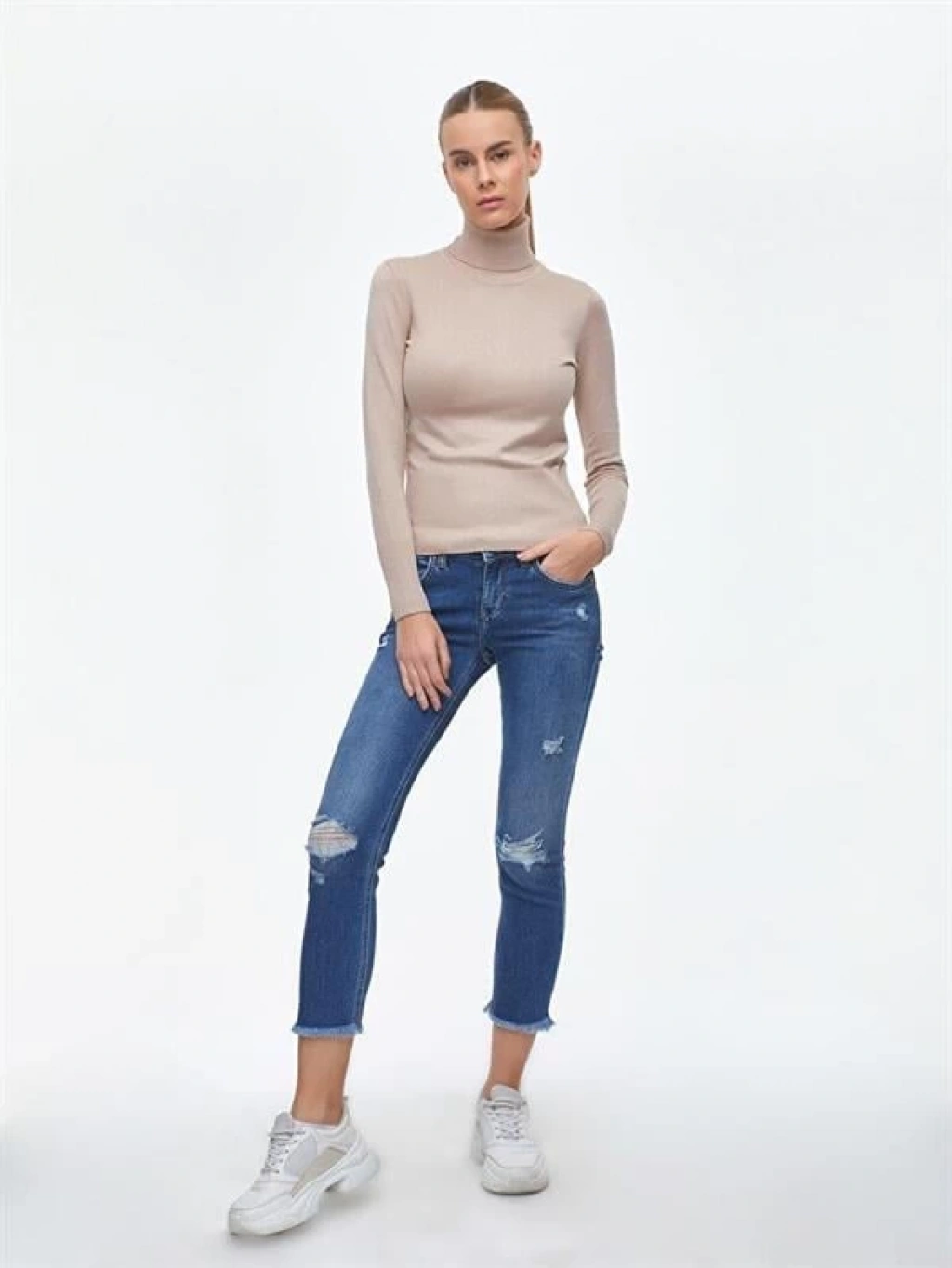 Balıkçı Yaka Yüksek Kazak BEJ