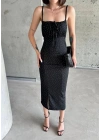 Kadın tül detaylı midi boy yırtmaçlı elbise