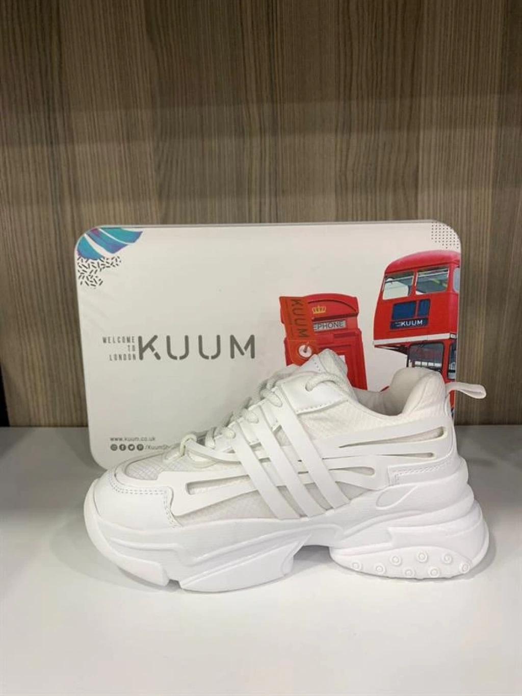 KB-X155 Kuback Beyaz Cilt Siyah Cilt Detaylı Siyah Yüksek Taban Günlük Spor Ayakkabı