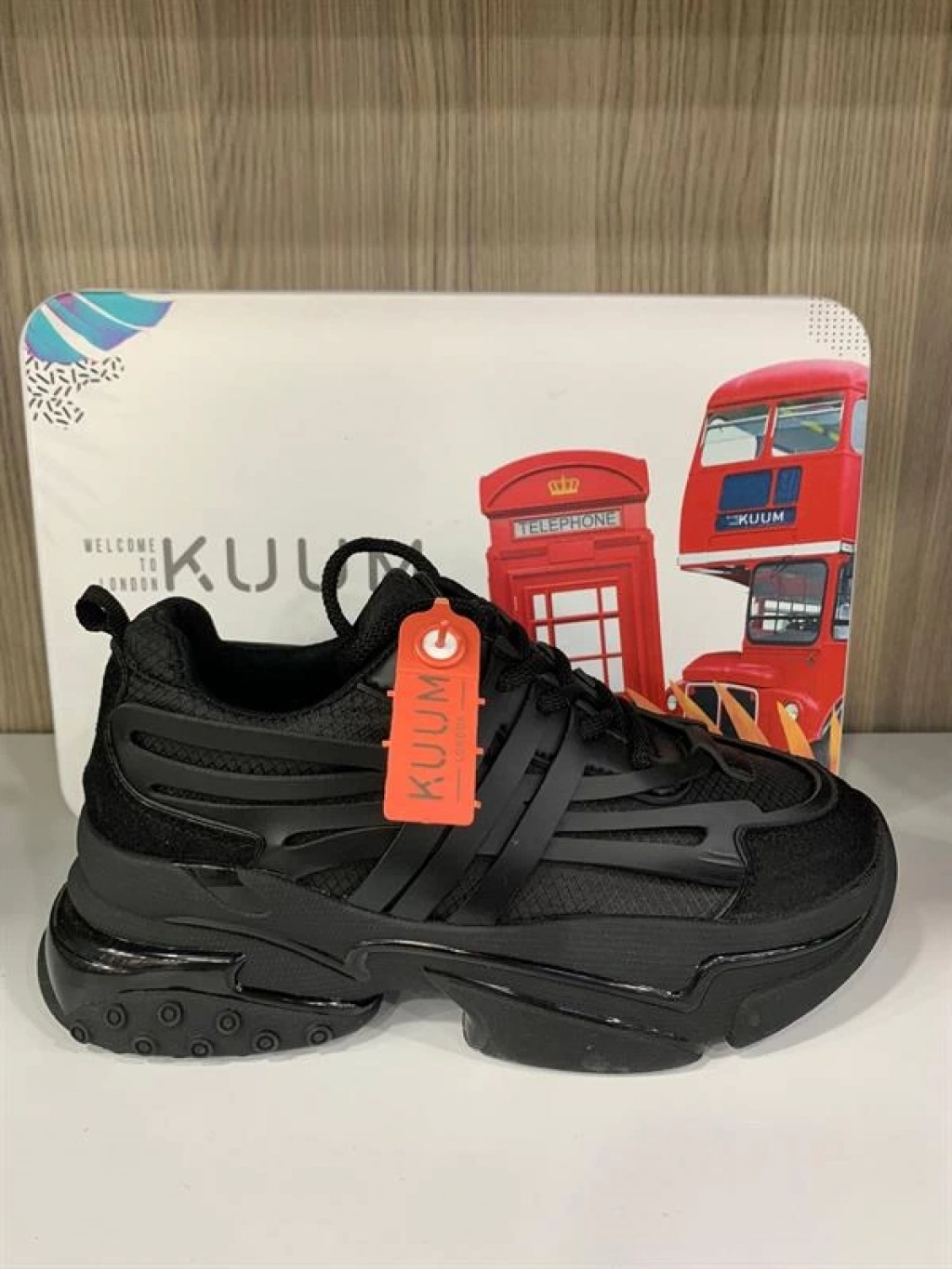 KB-X46 Kuback Siyah Bej Yüksek Siyah Taban Günlük Spor Ayakkabı