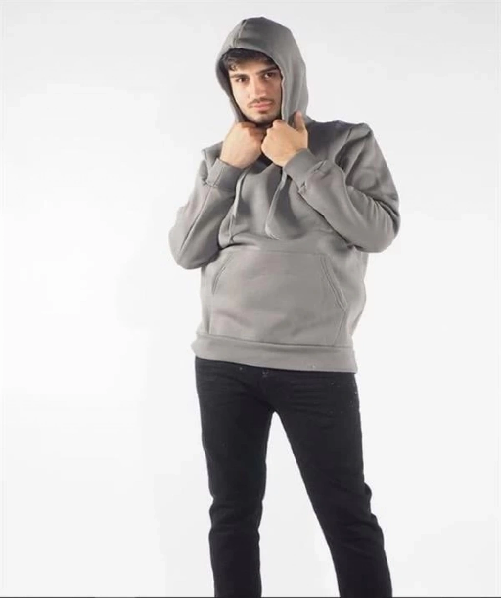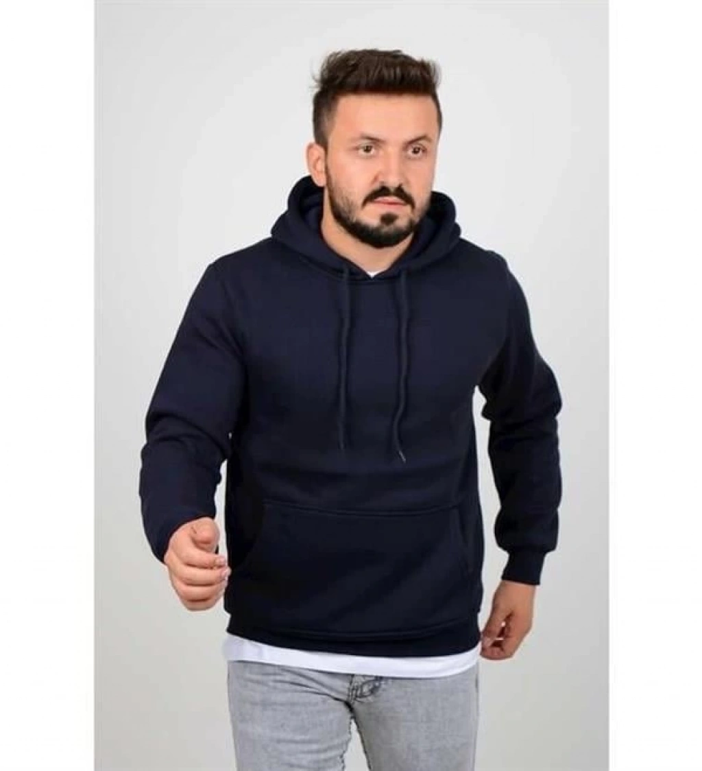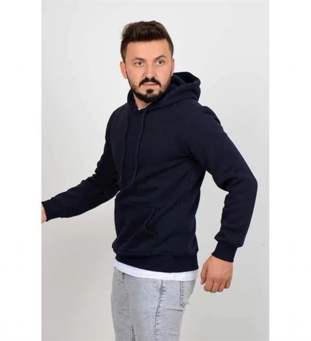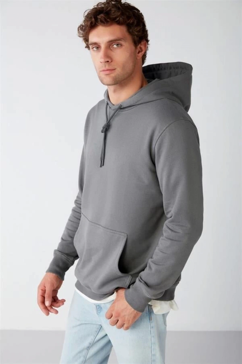 Kapüşonlu Üç İplik Düz Sweatshirt