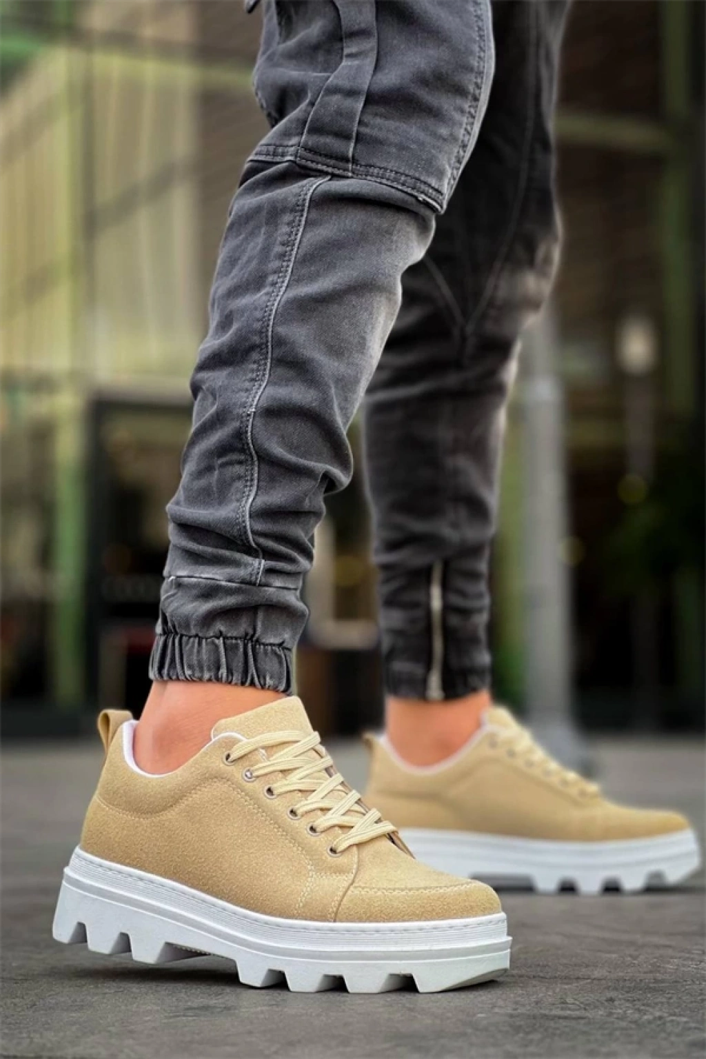 KB-X8 Kuback Bej Keten Süet Yüksek Taban Günlük Spor Ayakkabı