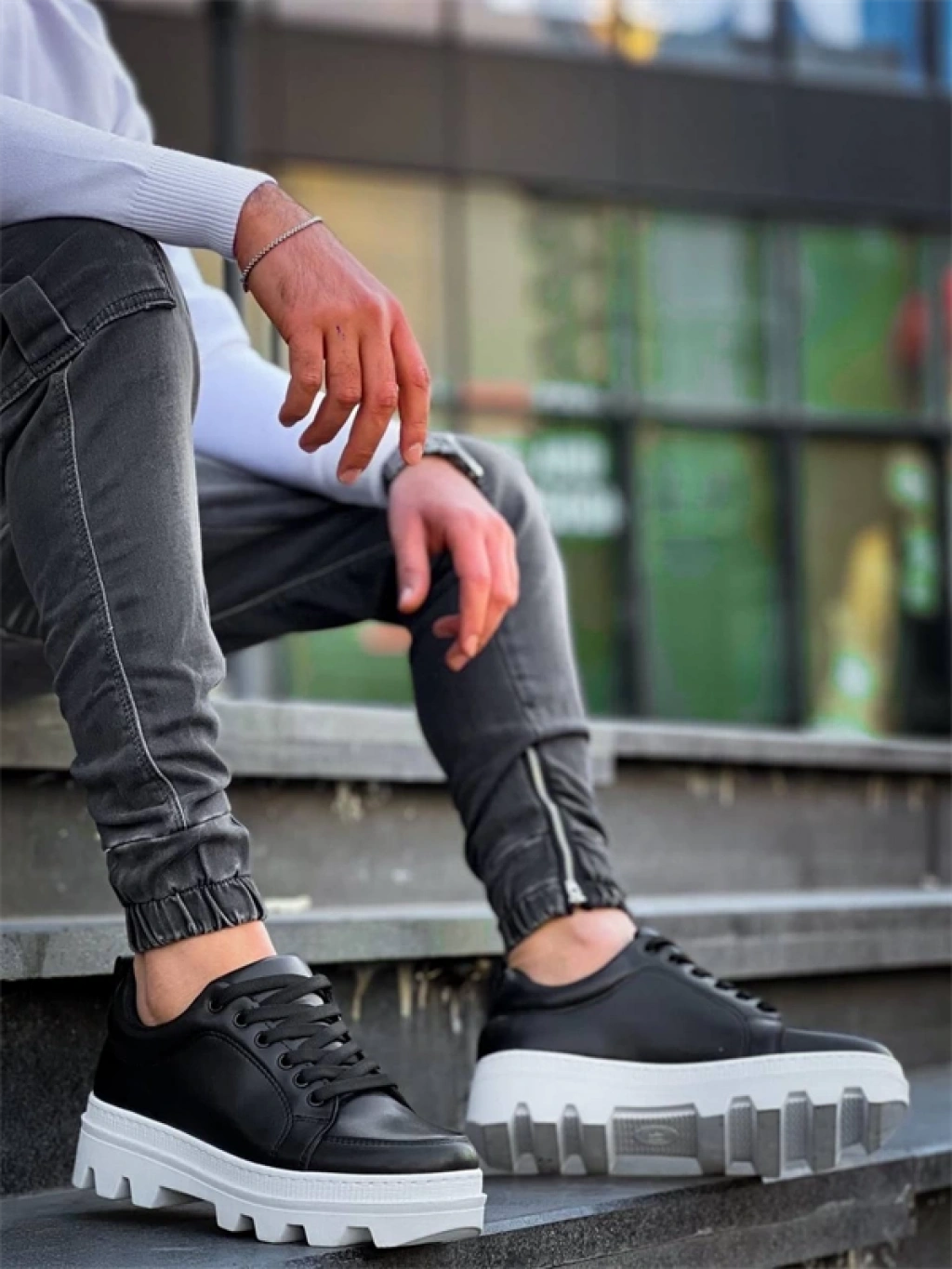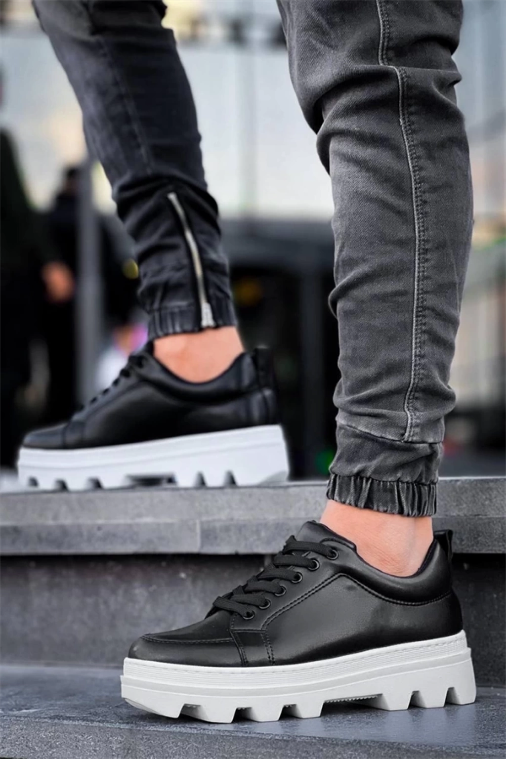 Kb-056 Kuback Siyah Cilt Beyaz Yüksek Taban Günlük Spor Ayakkabı