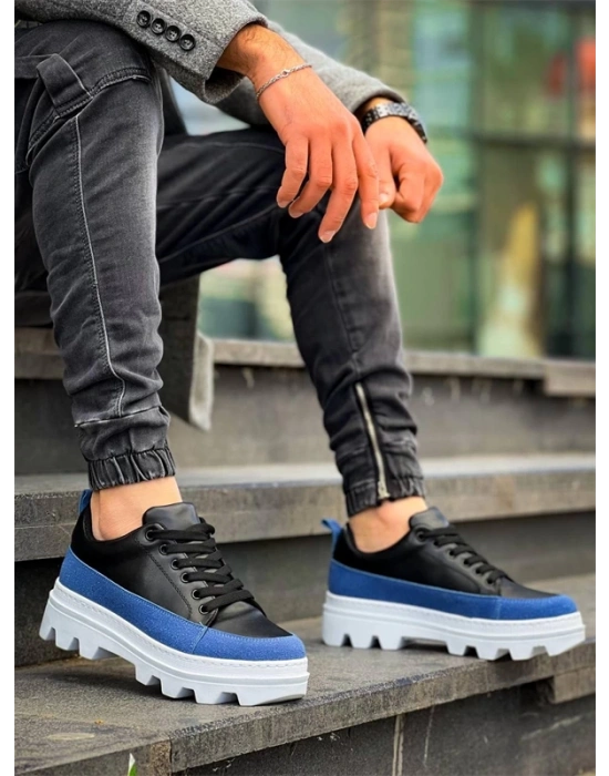 KB-X8 Kuback Siyah Cilt Mavi Süet Detaylı Siyah Yüksek Taban Günlük Spor Ayakkabı