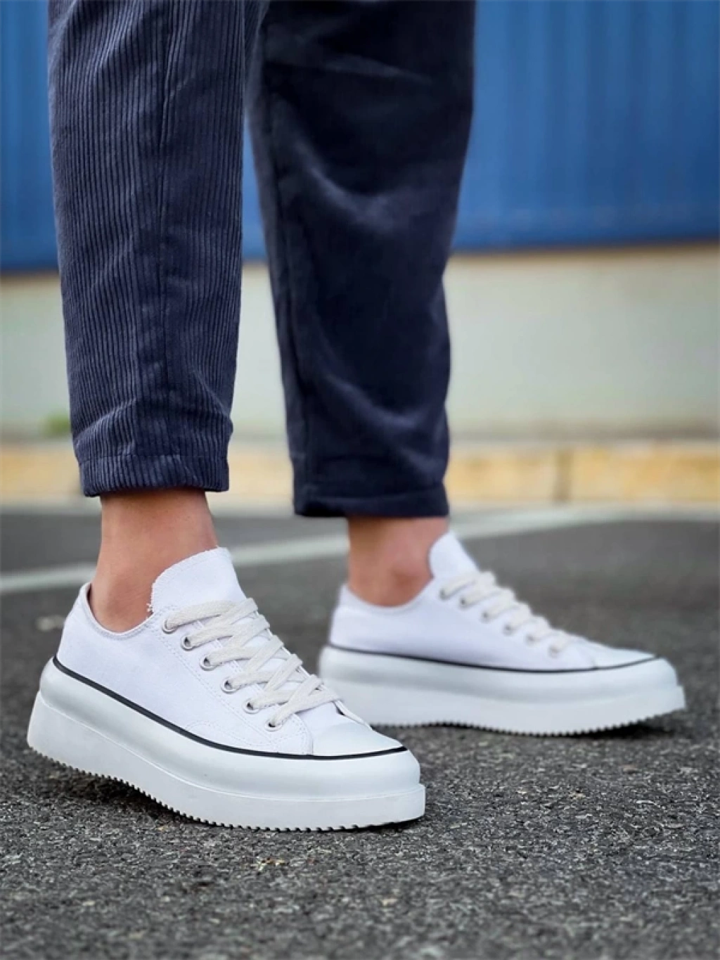Kb-Cx-3 Kuback Kısa Beyaz Keten Beyaz Yüksek Taban Spor Ayakkabı