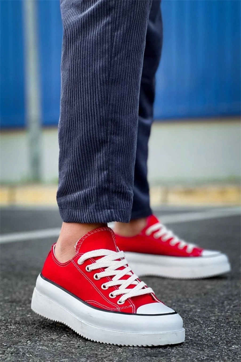 Kb-Cx-3 Kuback Kısa Kırmızı Keten Beyaz Yüksek Taban Spor Ayakkabı