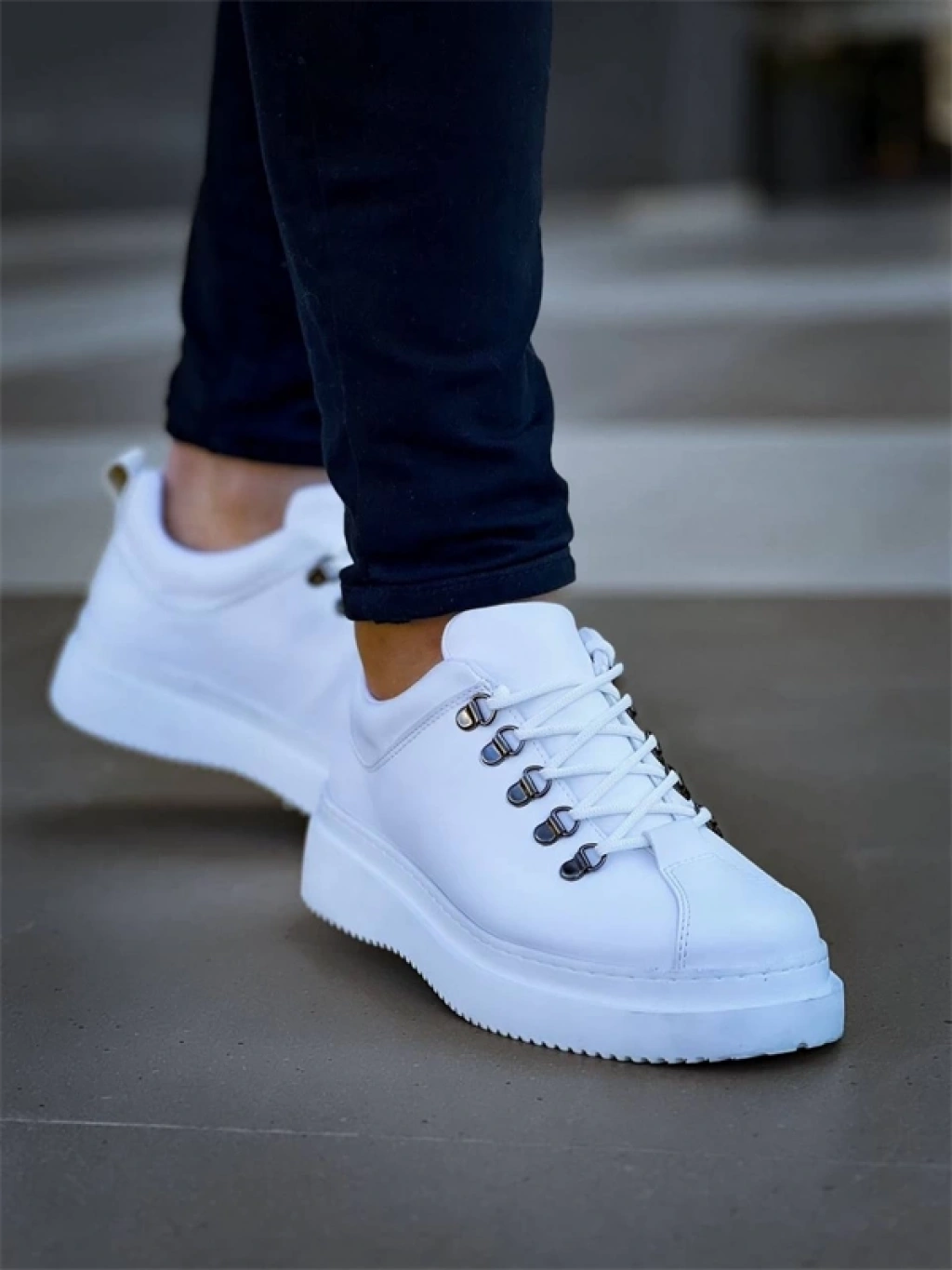 Kb-707 Kuback Beyaz Cilt Yüksek Taban Bağcıklı Günlük Erkek Ayakkabı