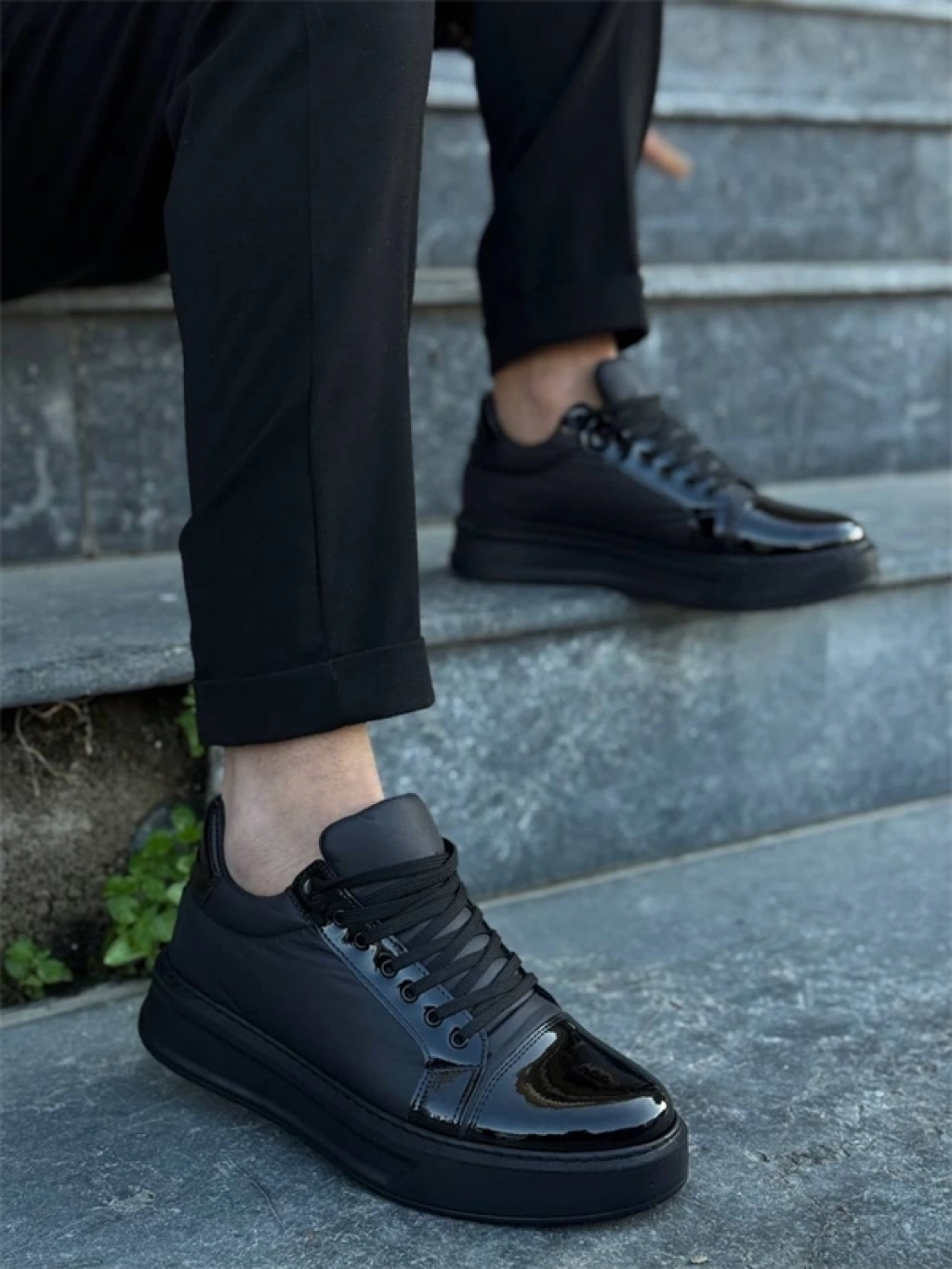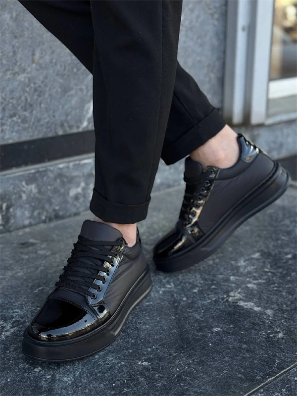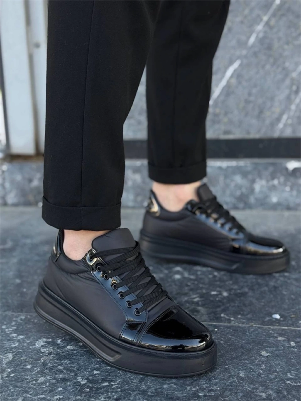 KB-X46 Kuback Siyah Rugan Yüksek Siyah Taban Günlük Spor Ayakkabı
