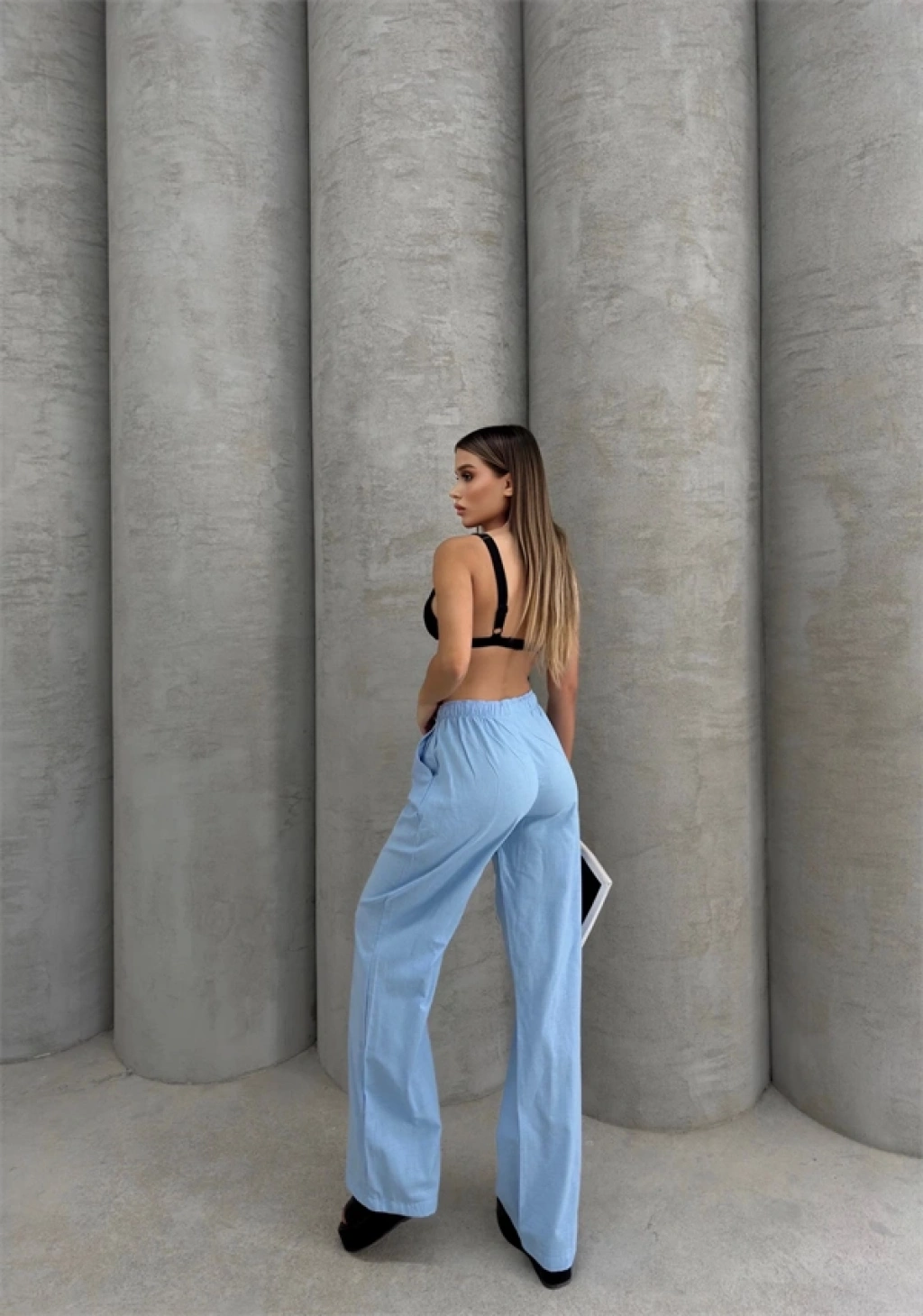 Pileli keten pantolon s255046