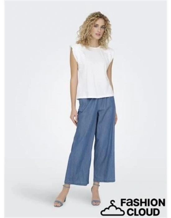 Kadın Yüksel Bel Püskül Detaylı Palazzo Jean Kot Pantolon