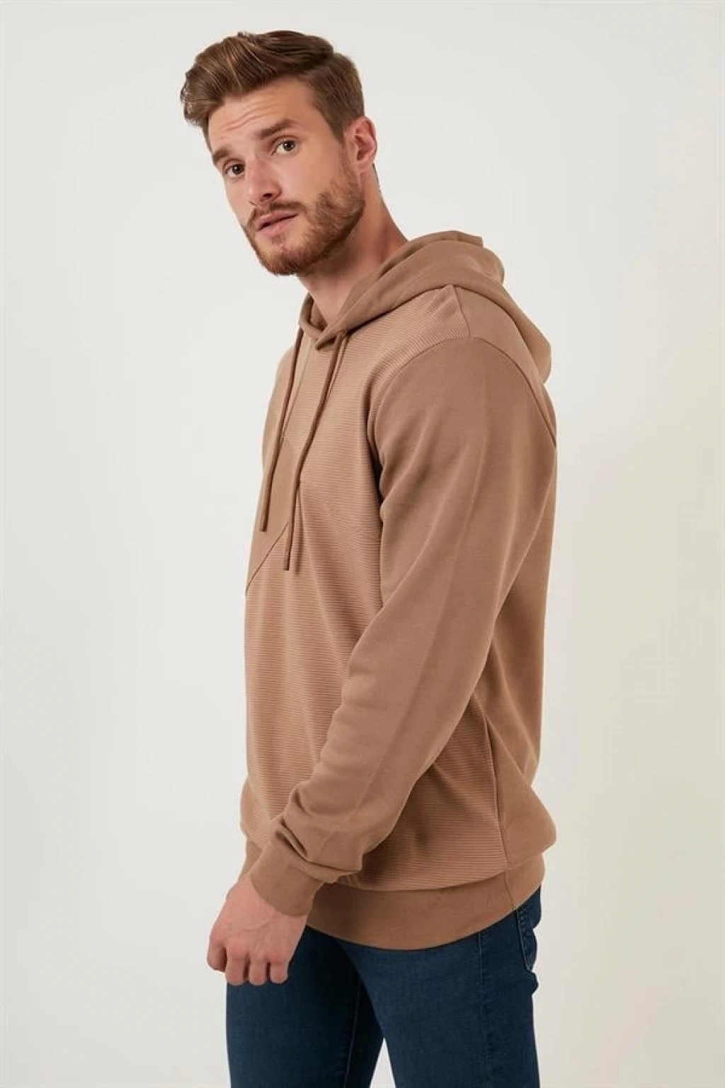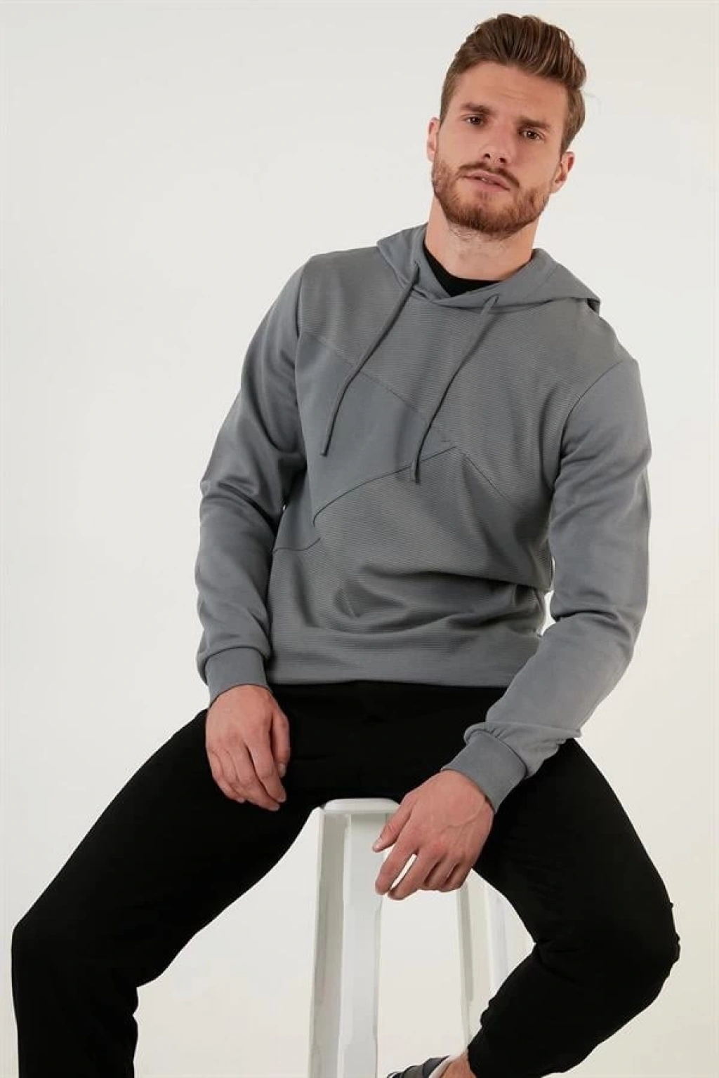 Kapüşonlu Üç İplik Düz Sweatshirt