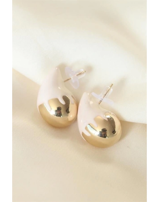 Minimal Beyaz Mineli Çift Renk Damla Küpe