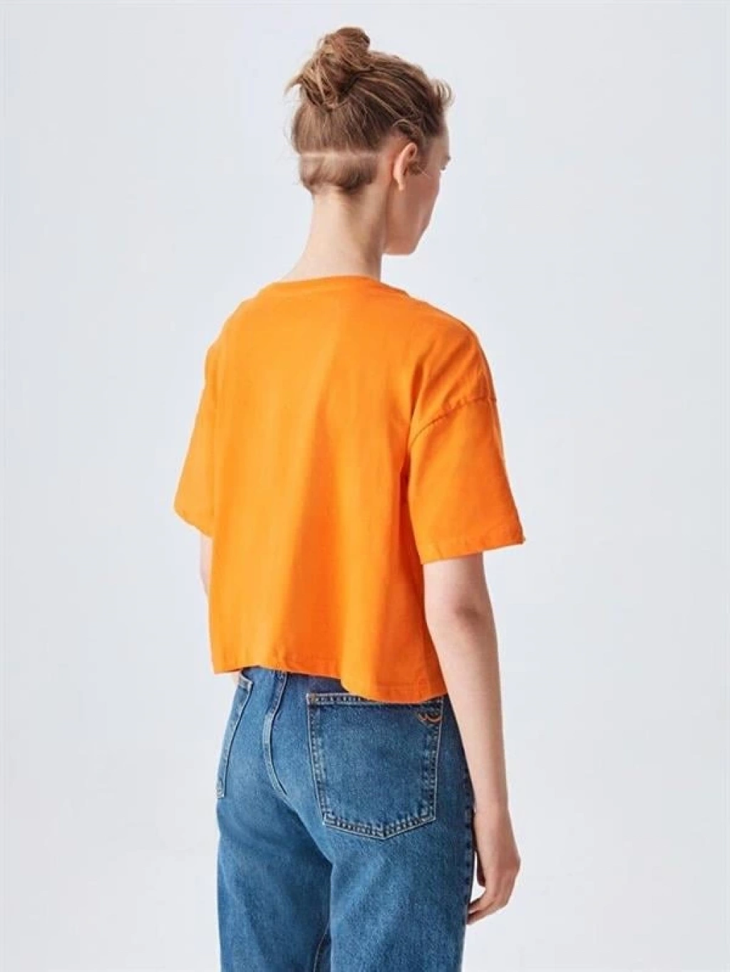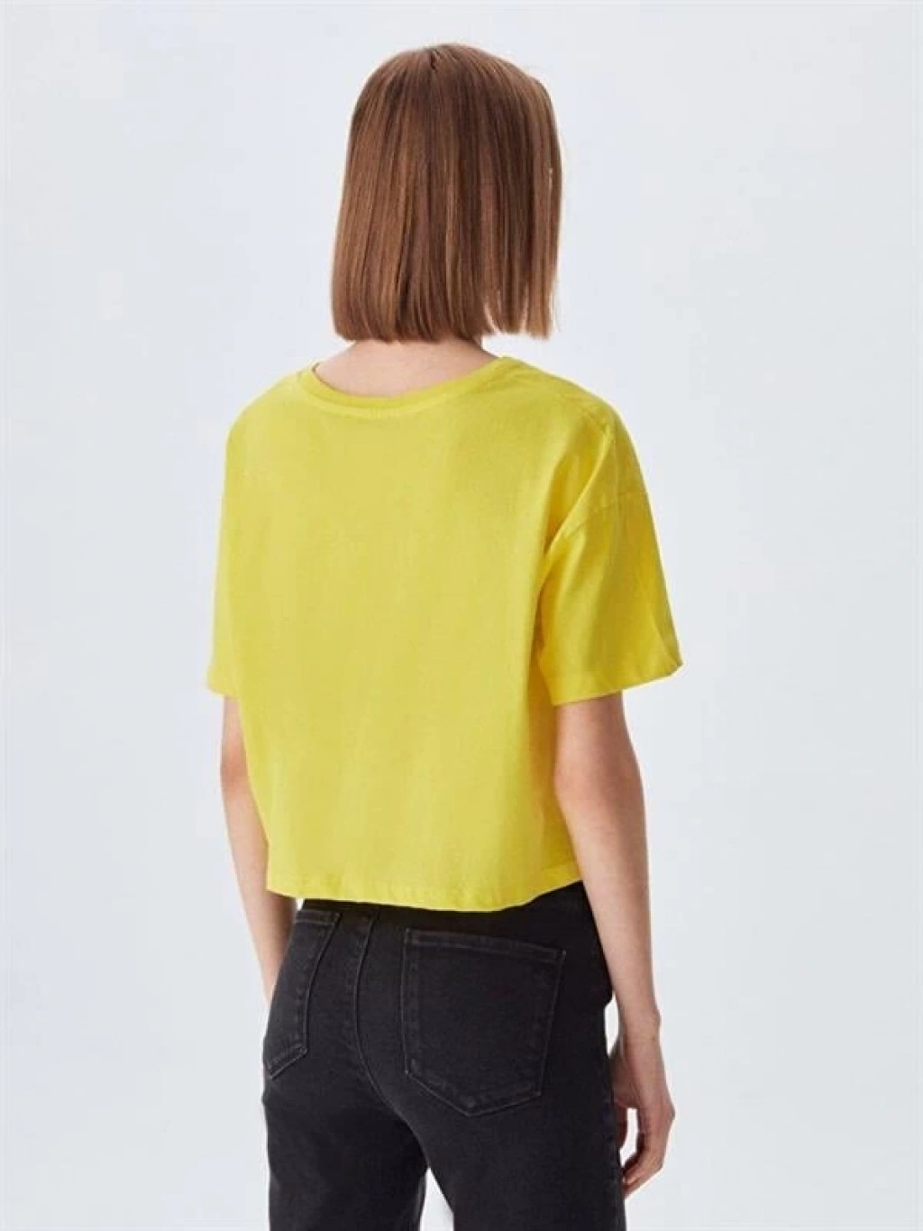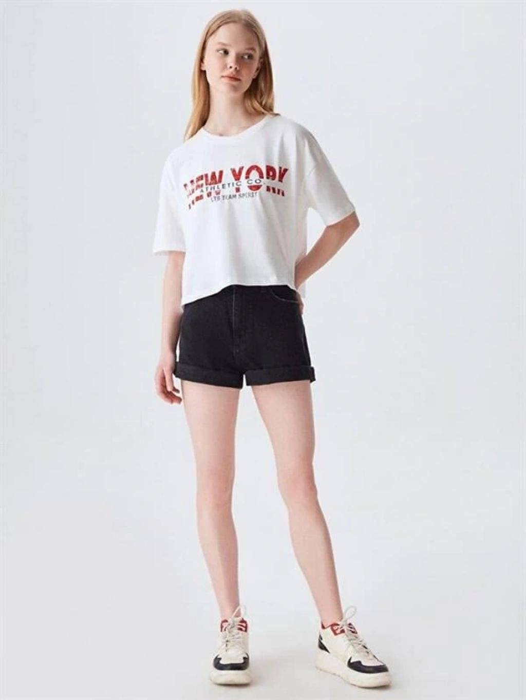 Oversize Beyaz Baskılı Crop Kadın T-Shirt