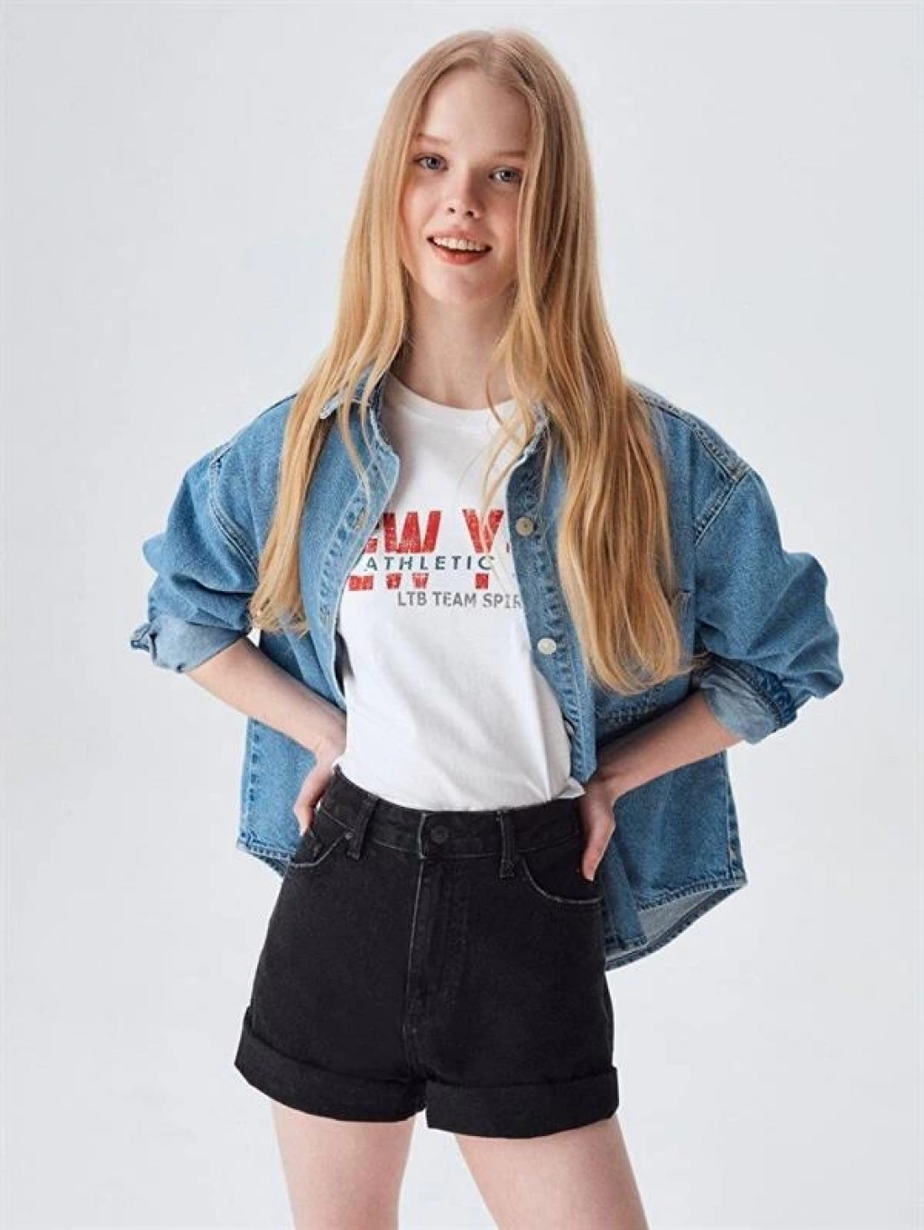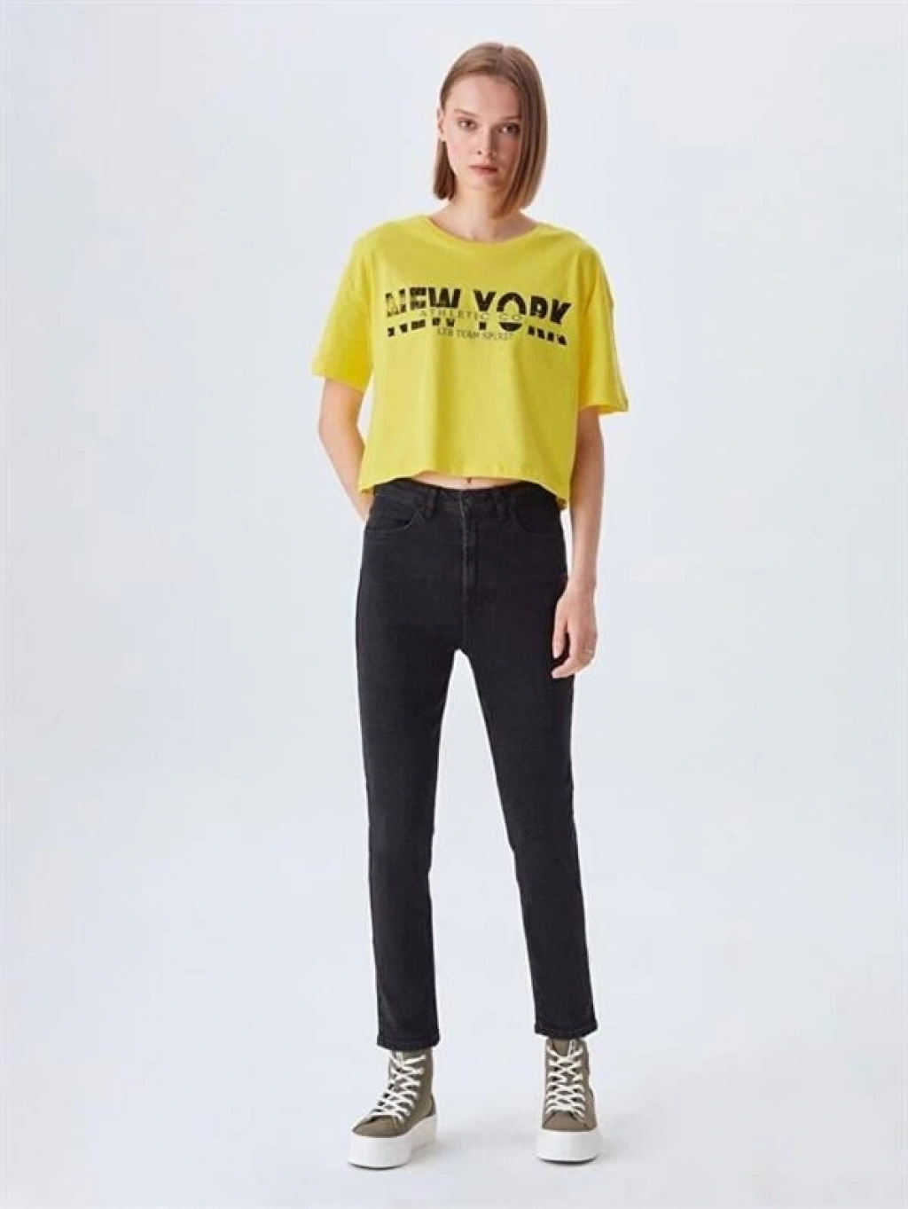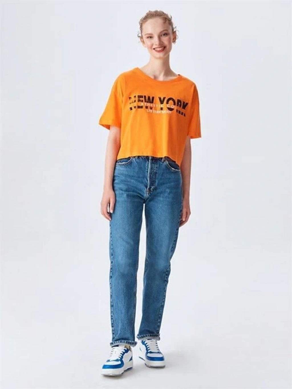 Oversize Beyaz Baskılı Crop Kadın T-Shirt