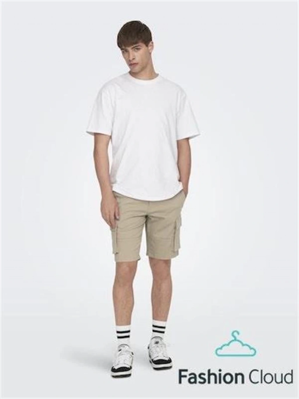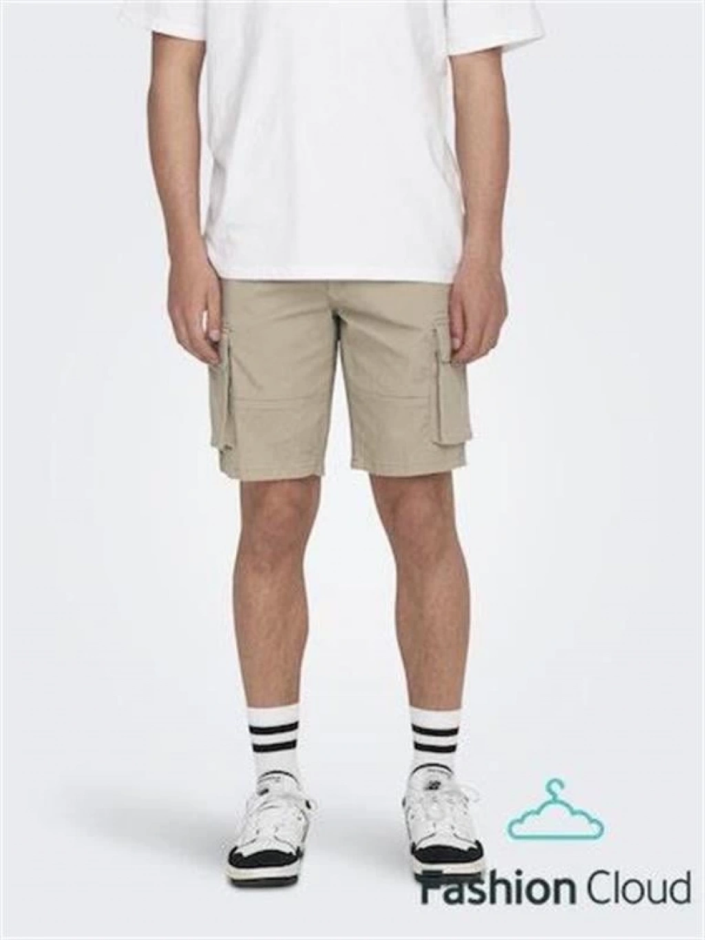 12273387 Geniş Kesim Erkek Baggy Short Bej