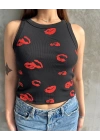 Kadın siyah bisiklet yaka gold düğmeli ottoman bluz s2310