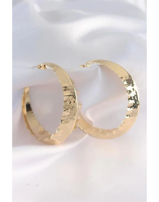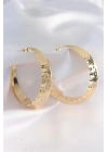 Pirinç Gold Renk Yaprak Desenli Halka Küpe