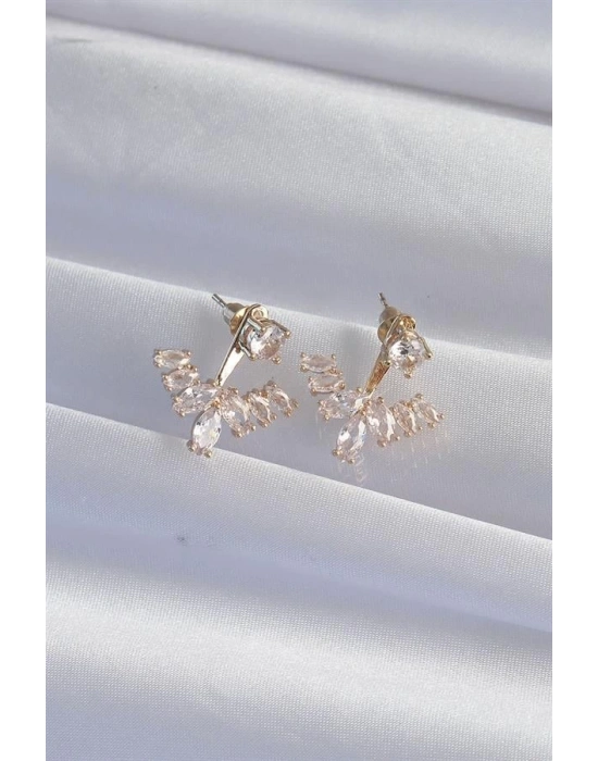 Pirinç Gold Renk Zirkon Taşlı V Model Küpe