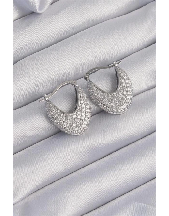 Pirinç Gümüş Renk Zirkon Taşlı Badem Model Küpe