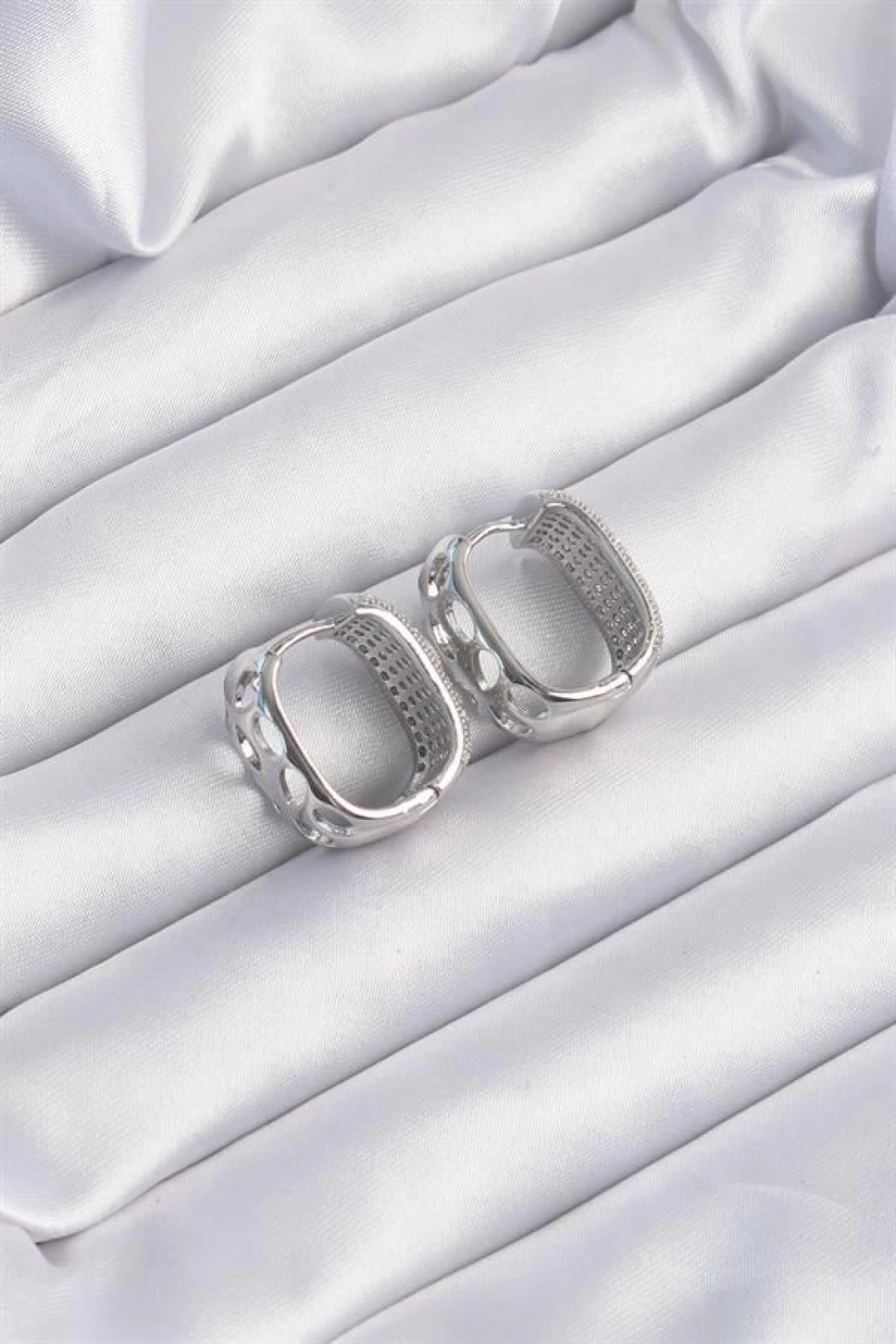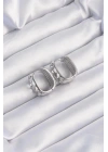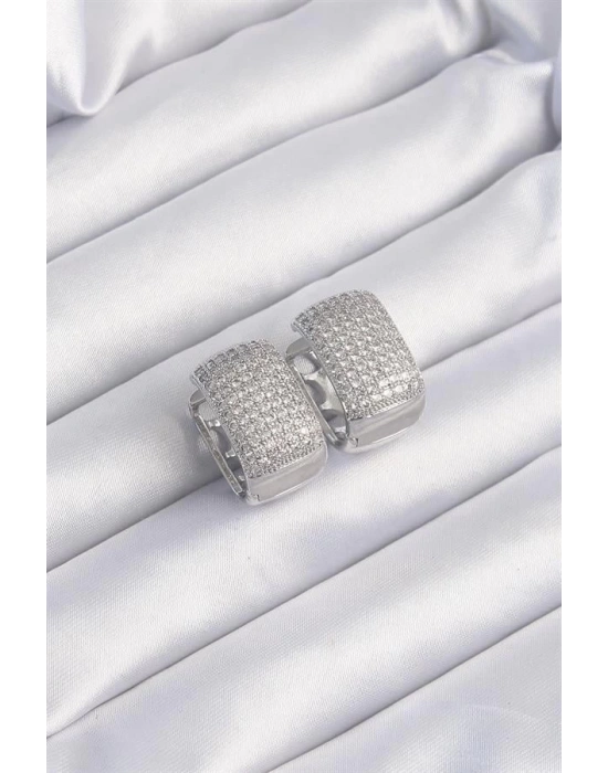 Pirinç Gümüş Renk Zirkon Taşlı Minimal Halka Küpe