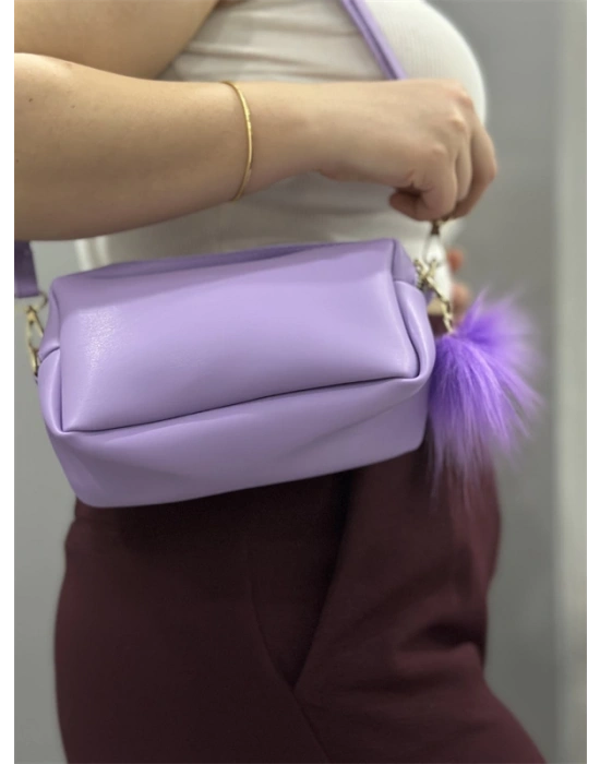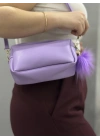 Ponpon mor cilt çanta