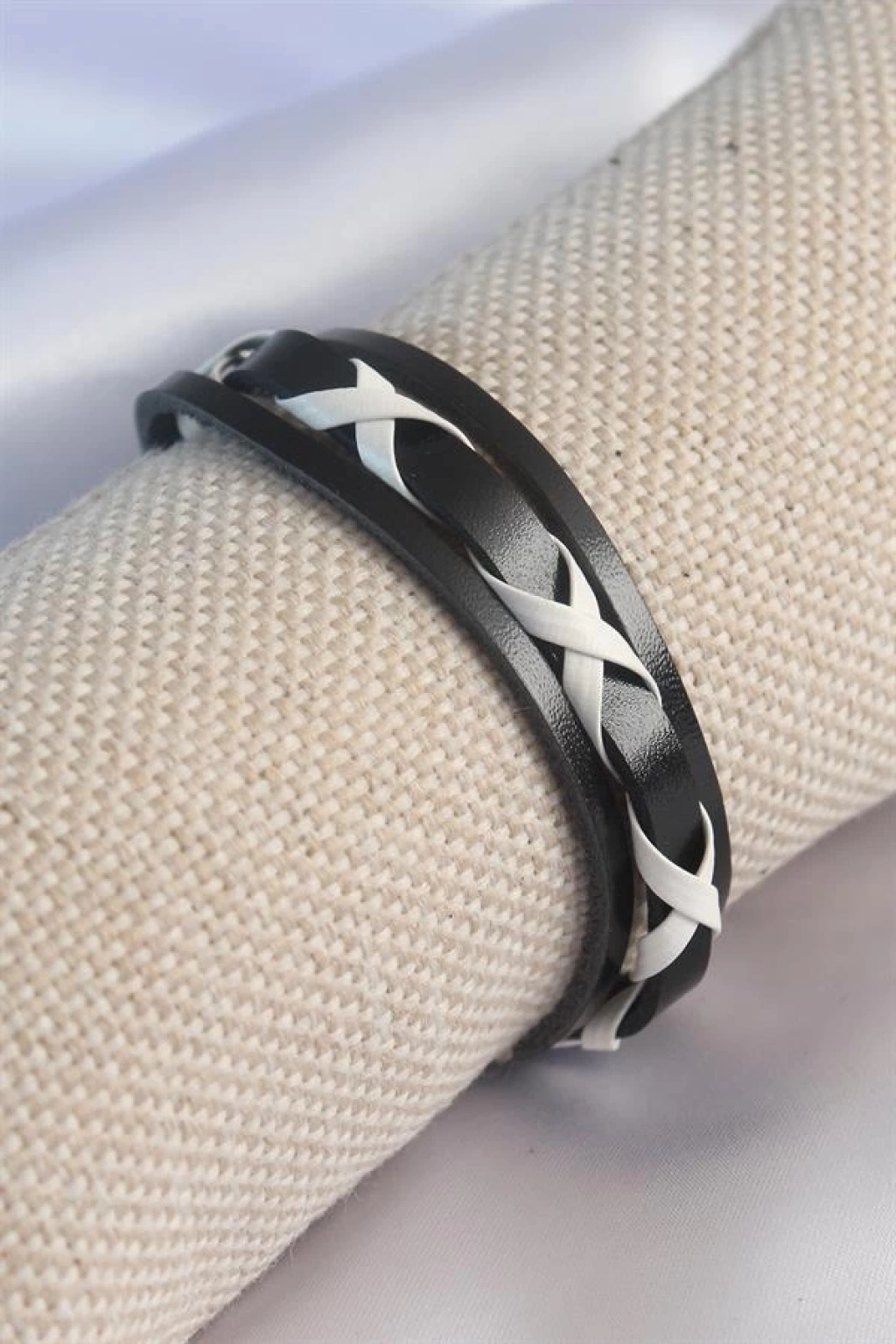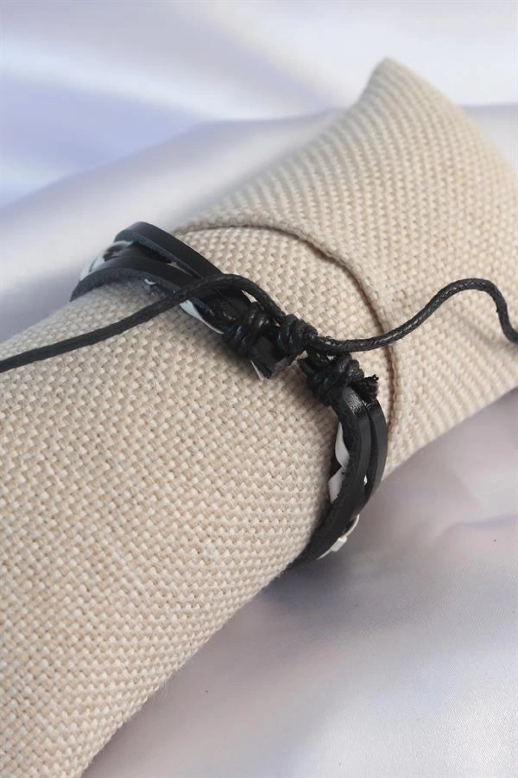 Siyah Beyaz Deri İpli Erkek Bileklik