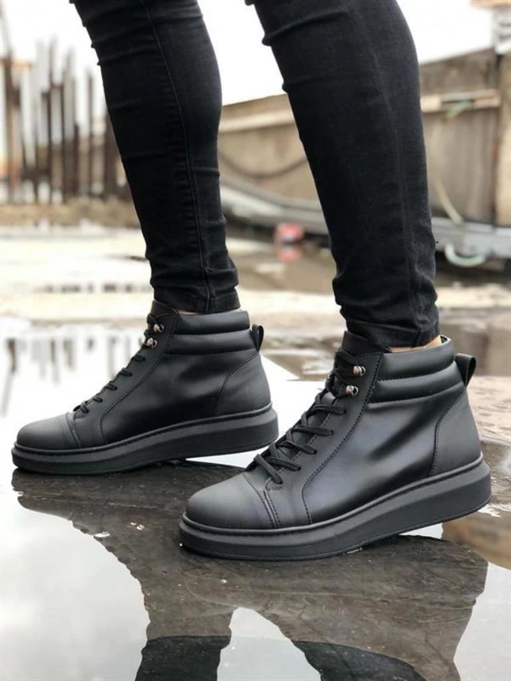 SLW205 Boston Bağcıksız Cilt Erkek Spor Bot BT - Siyah