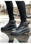 SLW204 Franca Bağcıklı Cilt Erkek Spor Bot BT - Siyah
