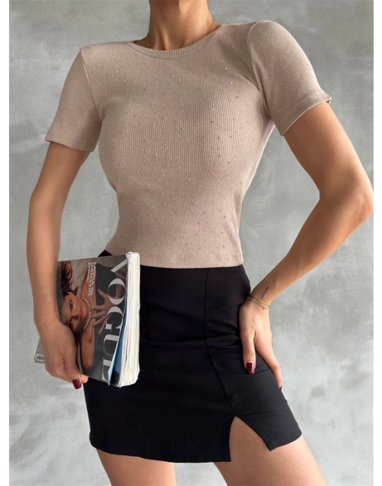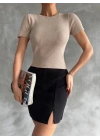 Kadın siyah bisiklet yaka gold düğmeli ottoman bluz s2310