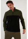 Yarım Fermuar Pike Kumaş Sweatshirt SIYAH