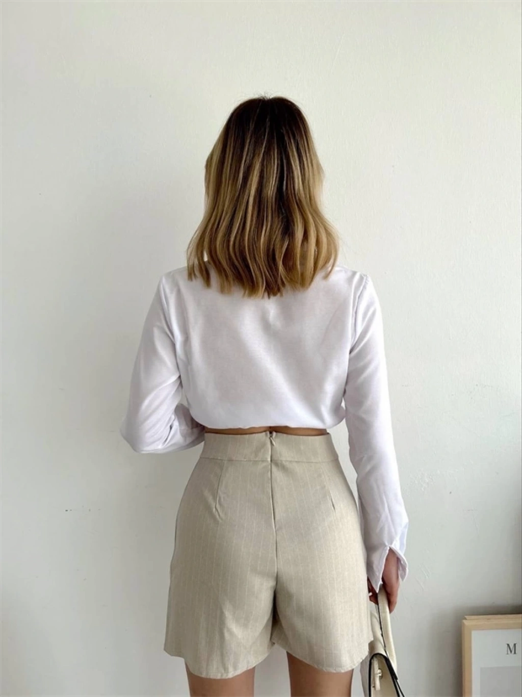 15351928 Beli İp Bağlamalı Kadın Penye Short Bej