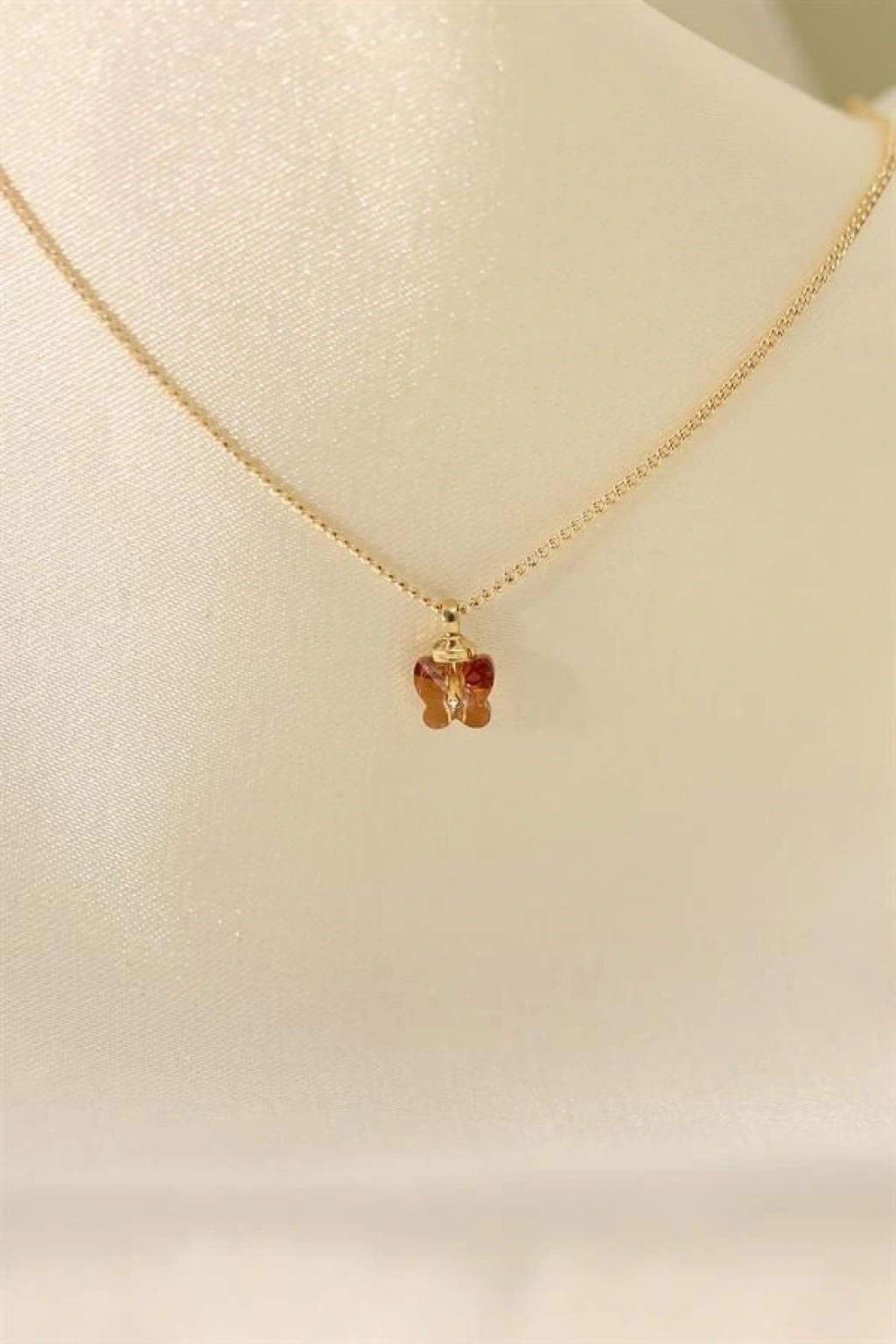 Zirkon Taşlı Mercan Renk Minimal Kelebek Kolye